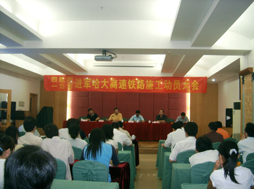 8月16日,一公司召開進軍哈大高速鐵路施工動員大會,四航局黨委副書記阮祥發、四航局工程業務部副經理王成功出席會議。阮副書記指出,一公司中標承建哈大高速鐵路是向鐵路市場邁進了實質性的一步,得到了鐵道部的認可,為以后京滬鐵路建設爭取更大的份額奠定了基礎,對一公司的意義十分重大。哈大高速鐵路地處高寒地區,工期緊,質量要求高,中交集團近10個單位參與施工,是一次艱巨的擂臺賽。阮副書記代表四航局黨委和四航局領導班子對一公司提出了9點工作要求:一是各級領導要高度重視,選派精兵強將進軍哈大工程;二是被選派的人員要珍惜這次機會,加強責任心,努力完成任務;三是公司各職能本部要發揮好協調服務的作用;四是要落實全面預算管理,又好又快地完成施工任務;五是加強分包隊伍管理;六是加強職工隊伍建設,培養好人才;七是發揚爭第一,創一流的精神,爭當排頭兵;八是各級黨組織要發揮戰斗堡壘作用,弘揚鐵路文化;九是做好后勤保障工作。