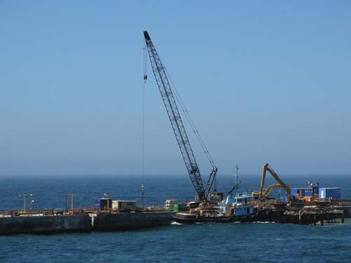 目前,11#及12#沉箱的預(yù)制工作各完成一半以上,并在本月15日將11#沉箱從預(yù)制干塢拖運(yùn)到接高碼頭的儲(chǔ)存區(qū)繼續(xù)上部施工。而施工現(xiàn)場(chǎng)的基床整平也已經(jīng)接近尾聲,估計(jì)本月底將全部整平完成并經(jīng)過驗(yàn)收,為最后兩個(gè)沉箱的安裝提供有利的前提條件。