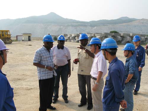 隨后,尼日利亞友人一行在項目部領導的陪同下,參觀了已經竣工的東防護堤工程、南防波堤施工現場和現場預制廠,對預制場內堆放的扭王字塊、柵欄板成品的外觀質量及預制生產線的布置等表示贊賞。