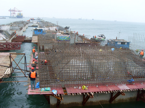 面對工程量大、工期緊,三公司欽州項目部全體施工人員齊心協力,克服不良天氣影響,見縫插針地施工。從去年7月15日進場開工以來至今年1月底,已經完成產值1.7億元,占工程總量的61%。目前,水下開挖接近完成,基床拋石全部完成,沉箱澆注27件,安裝19件,箱梁澆筑53件,胸墻澆筑三段。