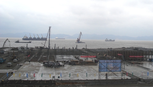 3月30日,中紀委委員、中國遠洋集團總裁魏家福在舟山市市委書記、市長梁黎明和中遠船務領導等一行陪同下,前往四航局舟山中遠船臺工程工地視察,看望了奮戰在一線的四航員工。