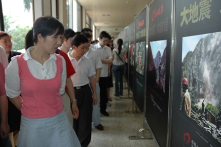 本次圖片展包括地震災情、黨和國家領導人親臨災區指揮抗震救災、人民子弟兵及廣大醫護人員在一線搶險救災等生動感人的照片100幅,真實直觀地再現了汶川大地震帶來的巨大災難。望著一張張淚流滿面的臉,看著救援人員被碎石瓦礫劃傷的雙手,白發蒼蒼的老人無助的神情……震撼著每個人的心靈,大家深深感受到中國人民敢于拼搏的昂揚斗志和不屈不撓的精神風貌及一方有難,八方支援,川粵同心、患難與共的摯熱情懷,生動詮釋了中國共產黨以人為本、執政為民的光輝形象。