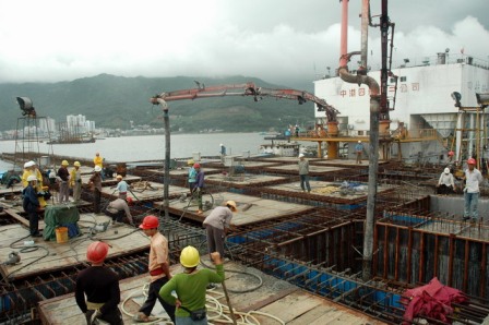 鹽田港區(qū)擴(kuò)建工程于2005年3月24日正式開工,總共有7個10萬噸級集裝箱泊位,碼頭總長2716米。開工以來,鹽田項目部平均每天完成產(chǎn)值超過二百萬元,施工高峰期,單月產(chǎn)值超過1億元;平均每半年完成1個10萬噸級碼頭的施工任務(wù)。