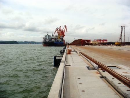 防城港18#-22號(hào)5個(gè)泊位總噸位為67萬(wàn)噸,全長(zhǎng)為1556米,目前為廣西建港史上最大的碼頭泊位工程。自2007年5月下旬開(kāi)工以來(lái),各項(xiàng)工程進(jìn)展順利,水工工程已經(jīng)完成產(chǎn)值85%以上。該項(xiàng)目部克服各種不利因素,嚴(yán)把安全生產(chǎn)、優(yōu)質(zhì)生產(chǎn)關(guān),以3天澆注1個(gè)大圓筒的進(jìn)度,確保特大圓筒的順利生產(chǎn),得到了廣西質(zhì)監(jiān)部門(mén)的充分肯定。