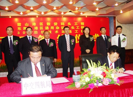 11月13日,湛江港霞山港區(qū)大型散貨碼頭工程、東海島港區(qū)通用雜貨碼頭工程、調(diào)順港區(qū)300號泊位技改工程開工簽字儀式在湛江港海港大廈順利舉行,廣東省經(jīng)貿(mào)委主任楊建初,湛江市領(lǐng)導陳耀光、嚴植嬋、王中丙、鄧振新等出席了簽字儀式。四航局董事長梁卓仁代表施工單位在儀式上發(fā)表講話并與湛江港集團董事長鄭日強簽署了湛江港300號碼頭技術(shù)改造工程合同。