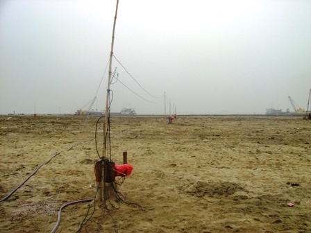 南沙糧食碼頭試驗區科研項目采用深井降水聯合強夯的新型"靜-動力"超軟弱地基加固技術加固軟弱地基。目前,已完成全部處理面積22500平方米的強夯工作,正進行加固后效果檢驗,積極準備工程驗收,總結科研試驗成果。