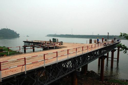 目前,鉆孔平臺正在緊張搭建中,并施打鋼管樁4根。西岸鋼棧橋也于3月17日開始施工,現已完成起始橋臺施工及第一跨鋼棧橋的施工。