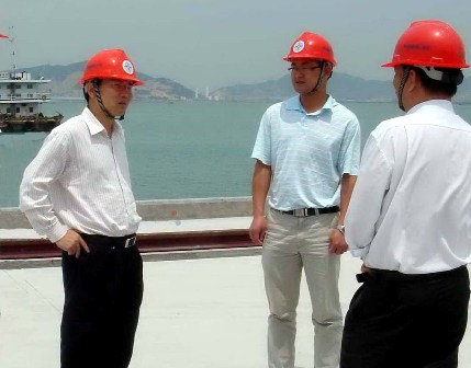4月10日,四航局總經(jīng)理孫國強在珠海分公司經(jīng)理馬少馥的陪同下,到二公司珠海高欄港2個5萬噸級集裝箱碼頭在建工程指導工作。