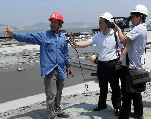 5月1日上午,珠海電視臺到珠海高欄港2個5萬噸級集裝箱碼頭工程進行采訪。項目部調度吳錫明接受采訪并表示,項目部將上下全力以赴,搶抓施工時機,確保實現珠海集裝箱碼頭工程630節點目標,向珠海人民交上一份滿意的答卷。