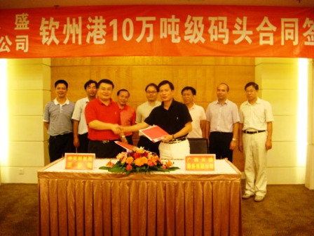 9月24日下午,廣西天盛港務有限公司欽州港十萬噸級散貨碼頭工程合同簽字儀式在廣西南寧舉行。三公司總經理何勇、廣西天盛港務有限公司董事長陳耀宗分別代表施工單位和建設單位在合同上簽字。