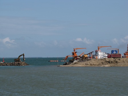 11月14日,湛江港霞山港區(qū)散貨碼頭護(hù)岸圍堰工程勝利合攏,為下一步施工奠定良好基礎(chǔ),同時(shí)掀起了全面施工的新高潮。