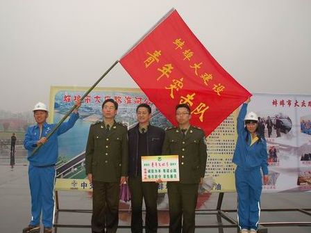 蚌埠項目部青年突擊隊積極參與主題為"蚌埠大建設,城市新生活"的蚌埠市青年文明號優質服務示范月活動,并于4月18日作為交通系統代表,從蚌埠市委常委、常務副市長張孝成手中接過"蚌埠大建設青年突擊隊"隊旗。