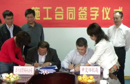 4月21日上午,四航局簽訂廈門港招銀港區8、9號泊位碼頭工程施工合同。漳州招商碼頭公司總經理李宏午、四航局副總經理方丘洚分別代表業主和施工單位簽訂合同。