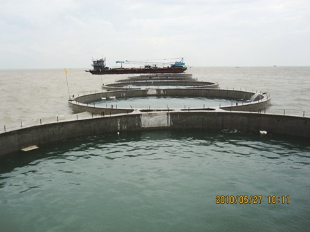 5月27日,廣西欽州港大欖坪12、13號泊位工程32個圓筒全部順利安裝,單個圓筒直徑19米,高18.6米,重1900噸。
