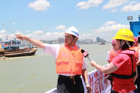 8月3日中午,港珠澳大橋珠澳口岸人工島北標段堤心石拋填順利露出水面,將整個工程的施工推向了一個高潮。珠海電視臺等媒體對整個出水過程進行了現場跟蹤報道。