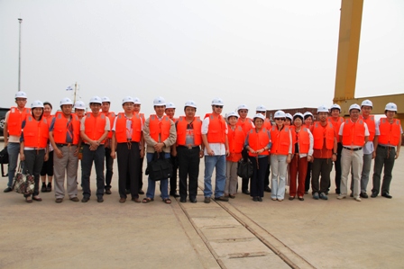 王參贊一行聽取了項目有關情況的介紹,并登上"拖37"船,沿海由西往東依次視察了已完工的主碼頭、油碼頭、主碼頭延長段及車間、GRN臨時集裝箱碼頭、GRN臨時集裝箱碼頭延長段及在建的漁業碼頭南部延長段等六個項目。