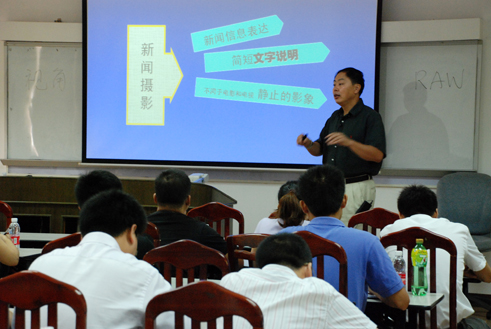 米金升介紹了《交通建設報》的定位、功能和發展方向,并結合具體案例,深入淺出地對新聞寫作的基本模式進行指導。他鼓勵大家在寫稿時認真思考,集中主題,突出亮點,重視對細節、過程的描述,寫出更多、更好的新聞作品。陳喆教授結合《華南港工》報、《四航》雜志的實例作品講授了新聞攝影的認知、技巧等。
