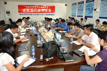 本次講座邀請四航局企業文化部鄭祖平副主任宣講。主要介紹四航文化內涵、四航核心理念、中交標識系統和四航鐵路項目文化建設的要求。同時,還講授了如何做好宣傳報道和新聞攝影工作,以及如何應對新聞危機。