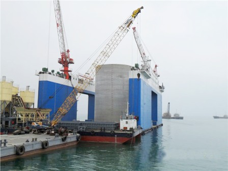 4月27日,經過欽州港項目部和“四航廣州號”歷經12個小時的共同努力,廣西欽州港30萬噸級石油碼頭工程第一個圓筒成功安裝,該圓筒高29.5米、直徑20米、重3600噸,是我國目前最高、最重的圓筒.