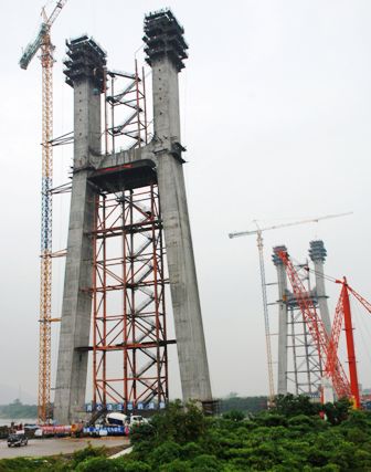 思賢窖特大橋是貴廣鐵路全線關鍵控制性工程之一,而兩個主塔的施工又是思賢窖特大橋建設的重點、難點。主塔位于地質狀況復雜的思賢窖水道之上,高116.7米,主跨長230米。施工中,貴廣一經部通過深挖打牢基礎,克服了地下溶洞造成的樁基礎施工障礙;通過采用雙排鋼板樁,將施工影響控制在構筑的圍堰之內,確保了臨近的堤圍安全,為主塔順利封頂奠定了堅實基礎。