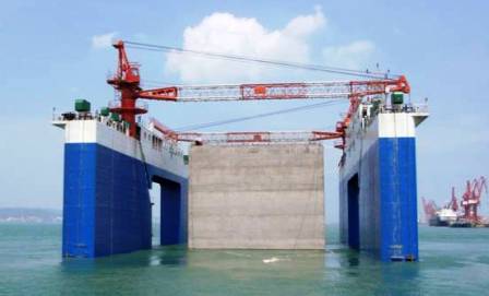 “四航廣州”號是四航局自行投資建造的8000噸級半潛駁,由三公司船舶部具體負責管理、使用。6月3日,“四航廣州”號半潛駁抵達福建廈門港招銀港區,承擔出廠后的首個施工任務,負責在2個月內安裝好招銀10號泊位碼頭工程單個凈重5600噸、荷載重達5800噸的大型沉箱23件。該船組急項目之所急、想項目之所想,采用自創的拋尾錨拖航法、高平潮前準備、高平潮作業等措施,群策群力,克服了福建海域風浪大、水流急、潮差大,工地出運碼頭水位低,可作業潮期短(只有潮水漲平出運碼頭才能搬運沉箱上駁)等困難,于7月14日順利完成該工程全部沉箱的安裝,比原計劃提前了整整20天。