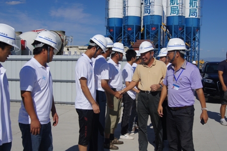 4日下午,梁卓仁董事長一行在拜訪了業主新疆交通建設局后,深入到新疆克塔高速公路三標項目施工現場,進行全線實地考察,參觀了項目部一分部、二分部駐地、攪拌站、中心實驗室等,與現場的工作人員親切交談。梁董在現場認真聽取了項目部領導對項目情況的介紹,并在當天下午到一分部駐地召開臨時現場辦公會,針對存在的施工進度及資源配置等問題做出了重要指示。