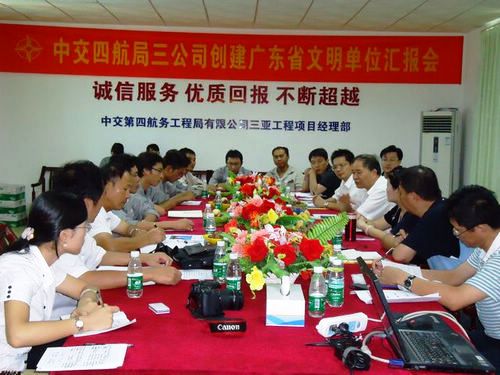 8月27日,由廣東省直工委處長雷義、副處長陳振賢帶隊的省直工委檢查組到三亞碼頭項目部考核三公司文明單位創建情況。四航局紀委書記、工會主席肖干生,四航局企業文化部主任陳慰斌,三公司黨委書記陳浩平,三公司黨委副書記、工會主席黃祥波等陪同檢查。