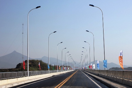咸寧核電廠是我國第一座內陸核電項目,總投資超過600億元,它的建成對突破湖北省能源資源匱乏瓶頸、滿足當地經濟社會可持續發展具有重大戰略意義。二公司參建該項目永久進場道路工程,是整個核電廠建設的前期控制工程,為滿足核電廠場地建設和營運期間機械設備(重型設備)和物資人員進出提供必要條件。永久進場道路工程于2009年5月開工,道路全長1.64公里。富水大橋橋長360米,設計荷載920噸。施工中,項目部嚴格施工過程管理,克服了征地拆遷和惡劣氣候等困難,確保實現了安全管理零事故、零傷亡,工程質量符合設計和規范要求。
