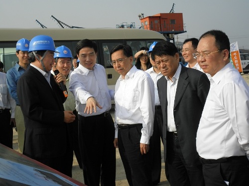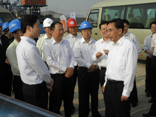 10月27日,廣東省委常委、常務副省長朱小丹在珠海市委書記、市人大常委會主任甘霖等領導的陪同下,到四航局參建的珠海高欄港干散貨碼頭項目和珠海秦發煤炭碼頭項目考察。
