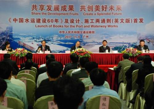 11月8日,由交通運輸部主辦,中交股份和中國港灣承辦,四航局協辦的“《中國水運建設60年》及設計、施工通則(英文版)首發活動”在廣州舉行。首發儀式上,隨著交通運輸部副部長徐祖遠在具有中國傳統文化特色的卷軸上鄭重地蓋上“正式發布”的鮮紅大印,《中國水運建設60年》和《水運工程設計通則》、《水運工程施工通則》(簡稱設計施工兩通則)英文版在廣州面世,標志著我國水運工程設計施工準則邁出了“走出去”的堅實一步,將為我國有關企業開拓國際市場提供重要的技術法規支撐。