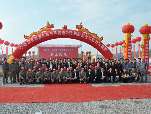 11月9日上午,重慶市三環高速公路銅梁至合川段高速公路工程開工典禮在銅合高速城南立交隆重舉行。典禮由重慶市政府副秘書長歐順清主持,出席儀式的有重慶市副市長凌月明、中國交通建設集團副總裁朱碧新、重慶市交委主任滕宏偉、重慶市級相關部門、項目沿線區縣領導以及設計、施工、監理等單位。中交四航局領導梁卓仁、曾繁龍、李惠明,中交二公院領導周露應邀出席。