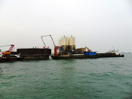 施工中,項目部克服了施工區域距離陸地較遠、施工環境惡劣等難題,經過21小時奮戰澆筑完成第一段胸墻,標志著該碼頭主體工程施工進入新的階段。