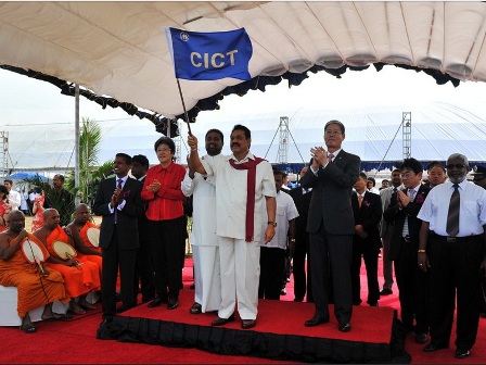 斯里蘭卡總統馬辛達·拉賈帕克薩出席了項目揭幕儀式及開工典禮。當招商局集團董事長傅育寧把科倫坡國際集裝箱碼頭公司旗傳遞給斯里蘭卡總統拉賈帕克薩之后,總統揮動小旗,指揮工程船開始吹填作業,由此宣告該項目正式開工。 中交股份副總裁陳玉勝、斯里蘭卡港務局局長、港口及公路部副部長、中國駐斯里蘭卡大使楊秀萍分別在開工典禮上致辭。