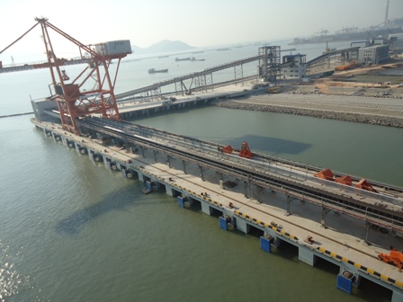 高欄港15萬噸級干散貨碼頭是珠海實施"以港興市"戰略的重大項目,也是廣東省重點項目之一。自2010年9月碼頭樁基施工開始,到碼頭1號泊位投產運行,僅用了15個多月的時間。在碼頭建設過程中,項目部始終認真貫徹“科學計劃,強化執行,優質高效,后墻不倒”的工程建設十六字方針,精心策劃,合理組織,高效施工,克服工期緊、施工現場交叉作業多等方面不利因素,安全、優質、按期順利完成了各個節點,確保了干散貨碼頭的順利投產試運行,得到業主的高度贊揚。