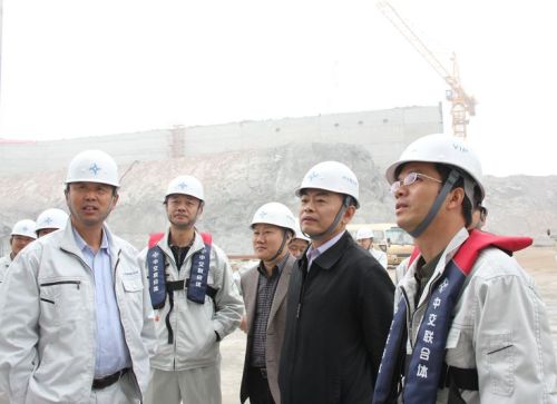 在牛頭島沉管預(yù)制廠施工現(xiàn)場(chǎng),陳云副總裁聽取了關(guān)于沉管預(yù)制廠整體布局、施工工程進(jìn)度、沉管預(yù)制等關(guān)鍵工藝以及沉管預(yù)制設(shè)備、人員、管理制度等工作準(zhǔn)備情況的匯報(bào),深入施工深塢現(xiàn)場(chǎng),查看了正在進(jìn)行鋼扶壁安裝的塢門大沉箱和正在緊張調(diào)試的高壓發(fā)電機(jī)房;在鋼結(jié)構(gòu)廠房,陳云副總裁一行參觀了即將開始足尺模型試驗(yàn)的2#沉管澆筑區(qū)。