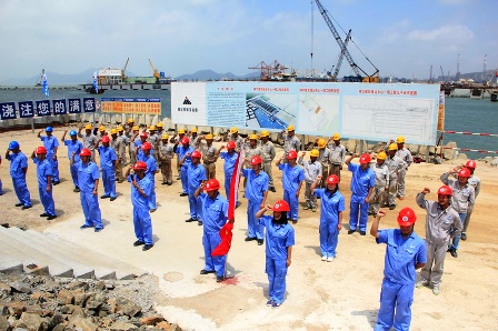 5月24日,珠海神華項目部在珠海高欄港隆重舉行青年突擊隊授旗儀式。四航局黨委副書記、紀(jì)委書記、工會主席張猛,四航局團(tuán)委書記江雄,二公司黨委副書記、副總經(jīng)理楊凱等領(lǐng)導(dǎo)出席授旗儀式。