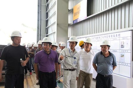 張志良一行在沉管預制工廠實地參觀了國內外先進的數控鋼筋加工設備、沉管預制鋼模板及首節沉管管節鋼筋綁扎情況,聽取了關于沉管預制廠整體格局、沉管預制關鍵工藝流程、廠區標準化管理、施工人員培訓及生活情況等的介紹。張志良一行還觀看了沉管預制廠、沉管預制工藝流程3D動畫,并就項目組織管理架構、混凝土溫控措施、沉管混凝土耐久性等問題與項目人員展開深入探討。