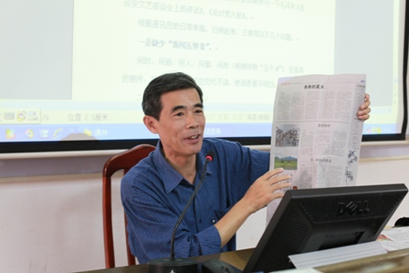 為與學員進行良好的溝通,米金升介紹了《交通建設報》的定位、功能和版面欄目基本情況,并以別具一格的課件向學員們講授了新聞寫作的建議,鼓勵學員找準新聞焦點,善于挖掘鮮活、生動的典型素材,不斷優化作品質量。