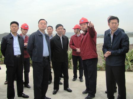 10月22日,四川省交通廳廳長高烽率調研組到三公司承建的南充港都京作業區施工現場調研。