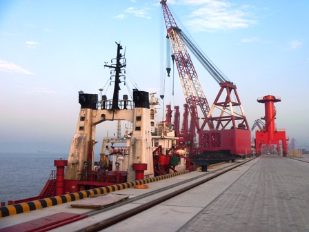 12月14日,五公司承建的招銀港區8號泊位碼頭投入試運行。