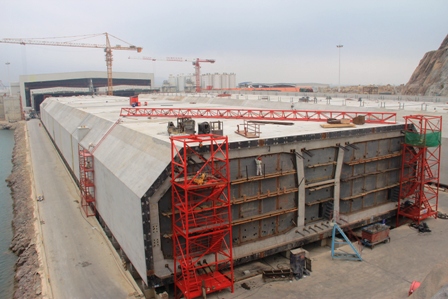 目前,兩管節正進行一次舾裝,封閉兩端后,將在管內安裝水箱(相當于將管節變成一個鋼筋混凝土結構的巨型“潛水艇”),待管節經水密性試驗后,在灌水的干塢內浮運至寄放區二次舾裝,于日后浮運出塢沉放安裝。