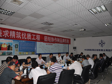 隨后,孫國(guó)強(qiáng)一行在云桂鐵路項(xiàng)目部會(huì)議室聽取了各分部、各參建子公司總經(jīng)理和項(xiàng)目部就目前施工生產(chǎn)情況、存在困難、施工生產(chǎn)計(jì)劃和需要解決的問題等情況的匯報(bào)。 孫國(guó)強(qiáng)在會(huì)上作了重要指示。他指出此行目的:一要落實(shí)公司工作會(huì)議的要求,重視項(xiàng)目管理基層工作;二要與云桂公司建立良好的溝通機(jī)制,為項(xiàng)目建設(shè)創(chuàng)造良好的環(huán)境;三是各參建子公司要加強(qiáng)對(duì)分部的支持,以此推動(dòng)云桂鐵路項(xiàng)目更好的建設(shè)。他提到目前項(xiàng)目建設(shè)存在的問題:一、安全、質(zhì)量還沒有完全受控;二、不夠重視關(guān)鍵線路的施工;三、沒有完全編制完成關(guān)鍵線路的技術(shù)方案;四、由于計(jì)量方面的工作造成現(xiàn)場(chǎng)現(xiàn)金流出現(xiàn)壓力。