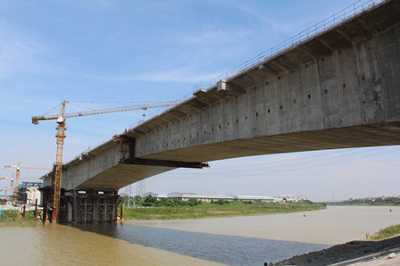 6月5日,二公司貴廣鐵路建設重點控制性工程、全線最大跨度連續(xù)梁——北江特大橋西引橋128米跨南沙涌四線連續(xù)梁在南海丹灶順利合龍。