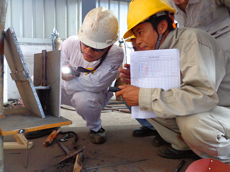 焊工是造船企業的重要工種,本次為焊工實操考試,考試級別較高。考試除對焊件的每一層焊縫進行外觀檢查外,還對焊件進行X光拍片,檢查焊縫是否有夾渣、氣孔等,再進行綜合評分。考試合格者,由ABS發給焊工合格證。