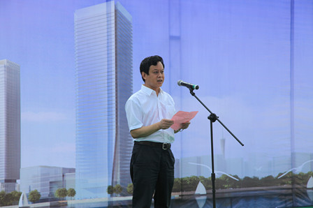 儀式上,蘇小澎代表海珠區委、區政府致辭,對中交南方總部大廈封頂表示熱烈祝賀,向參加基地項目建設的全體人員和為推動海珠區經濟發展做出貢獻的各界人士表示誠摯感謝。他指出,中交南方總部基地項目作為央企在廣州市建設企業總部的示范性項目,已列入廣東省現代化產業500強項目,基地建筑群“廣州之窗”以“001”獨特造型構建了未來珠江后航道、廣州南中軸線上的標志性建筑。他表示,海珠區委、區政府將繼續為中國交建、四航局和該項目建設提供全方位服務,通過推動環島路等交通基礎建設、推動瀝滘村改造,為推動總部基地發展營造良好環境。