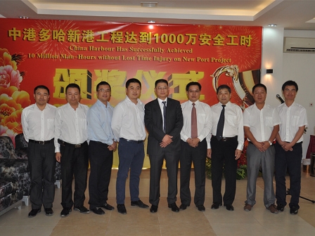 2013年8月28日,多哈新港項目安全管理再創佳績,順利實現10005695安全工時,9月12日,多哈新港項目1000萬安全工時慶典儀式在多哈新港項目部舉行,中國駐卡塔爾國特命全權大使高有禎、業主多哈新港項目管理委員會執行董事Nabeel Mohammed Al-Buenain、咨工AECOM中東區域公司經理Tim Verdon出席了此次慶典儀式。