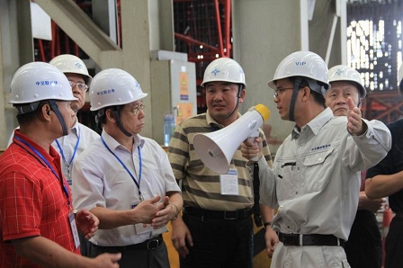 9月26日,廣東省政協(xié)常委、人口資源環(huán)境委員會(huì)主任賴詩(shī)仁率省政協(xié)15名委員組成考察團(tuán),在省政協(xié)委員、四航局董事長(zhǎng)、黨委書記梁卓仁和省政協(xié)常委、中交四航院副總經(jīng)理廖建航的陪同下,到港珠澳大橋島隧項(xiàng)目考察調(diào)研。大橋管理局黨委副書記韋東慶、島隧項(xiàng)目總部副總經(jīng)理羅冬等領(lǐng)導(dǎo)也全程陪同,四航局二公司副總經(jīng)理、沉管預(yù)制廠二分廠廠長(zhǎng)梁杰忠擔(dān)任考察解說(shuō)。