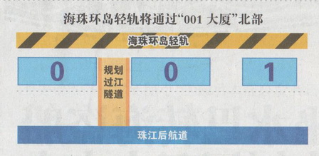 規劃圖中還顯示,在B棟和C棟之間規劃了一條過江隧道,通往番禺洛溪島。