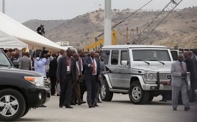 安哥拉總統多斯·桑托斯視察洛比托港擴建工程