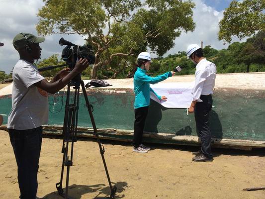 在項目部主營地會議室,項目人員向央視記者介紹了蒙內鐵路工程概況、重難點工程、主體工程進度、屬地化管理、社會責任履行等方面的情況,并詳細回答了央視記者提問。央視記者先后到項目主營地、路堤試驗段、蒙巴薩西站填海工區(qū)進行了現(xiàn)場拍攝,并采訪了項目部工作人員。